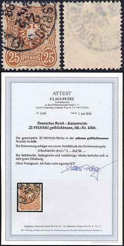 Eine Adlermarke des Deutschen Reiches in seltener Farbe gelblichbraun. Mir würde diese Farbe vermutlich gar nicht auffallen, da die vielen Farben bei ein und derselben Marke manchmal sehr schwer voneinander zu unterscheiden sind, auch wenn man einen Farbenführer zur Verfügung hat.
