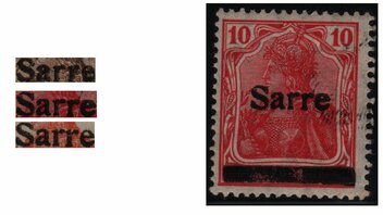 Wenn die Länge des Wortes Sarre 10,7 mm beträgt, wäre es der Typ II. Beide Marken, insbesondere die 3 Pfennige, wären dann die seltenen und teuren Typen, dann hätten die Prüfungen auch einen Sinn.