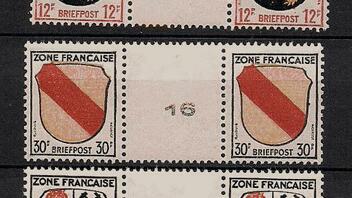 bei den Zwischenstegpaaren der allgemeinen Ausgabe der Franz.Zone gibt es Nummerierungen im Zwischenfeld (siehe Anhang) - was sind das denn für Angaben (das Feld im Bogen ist mir nicht bekannt) ?