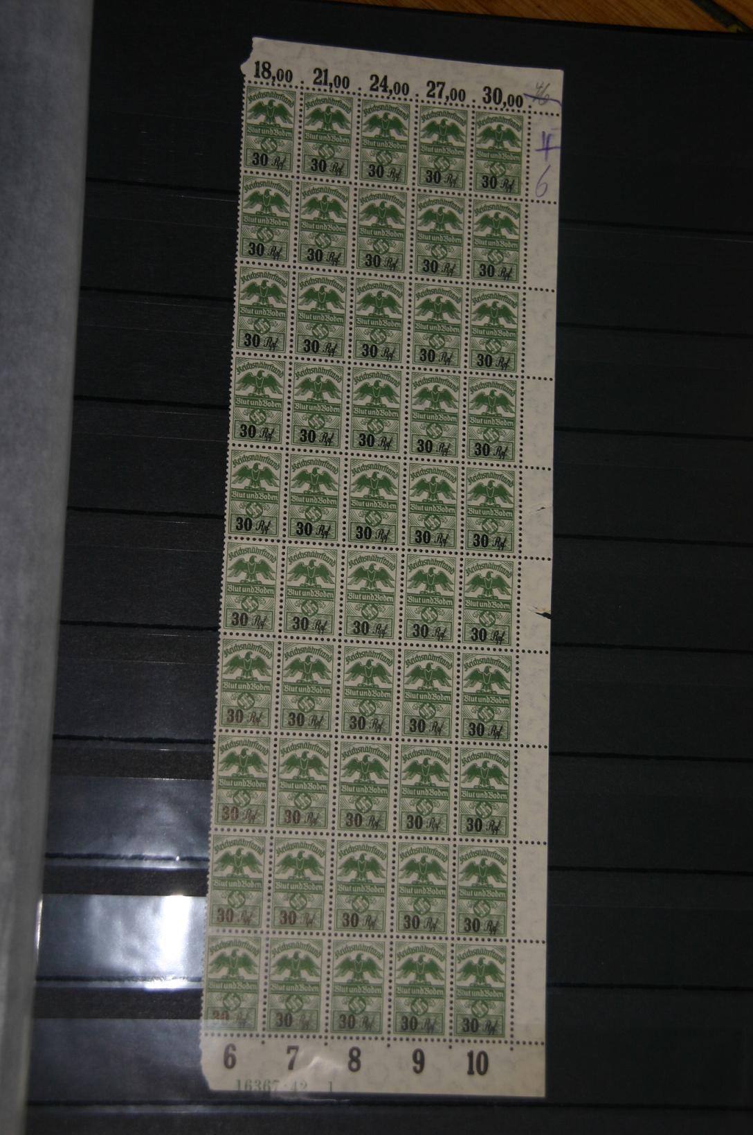 Es ist ein kompletter Bogen und ein halber Bogen, beide haben eine identische HAN und einen kleinen handschriftlichen Vermerk am Rand. Bei dem kompletten Bogen ist leider ein kleines Loch zwischen zwei Marken.