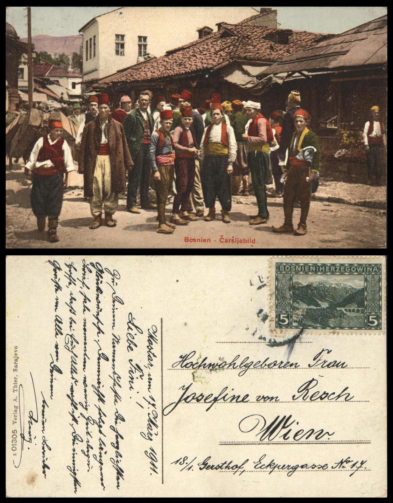 Leider keine neue Gegend, es ist der alte Marktplatz in Sarajewo, aus einer anderen Blickrichtung. Interessant, jetzt ist ein Teil der Dächer in blaugrau. ![]()