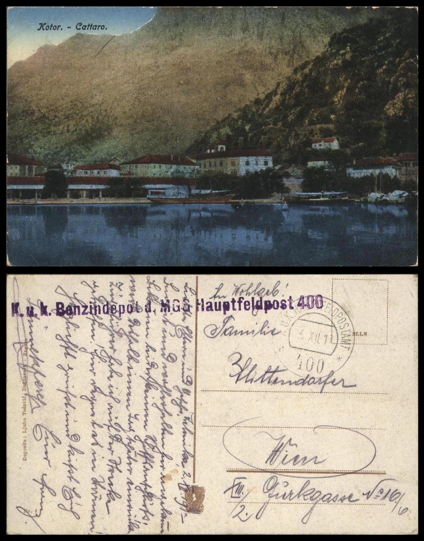 Eine ältere Karte, gelaufen 23.12. 1905 von Kotor nach Dubrovnik(alter Name Ragusa)