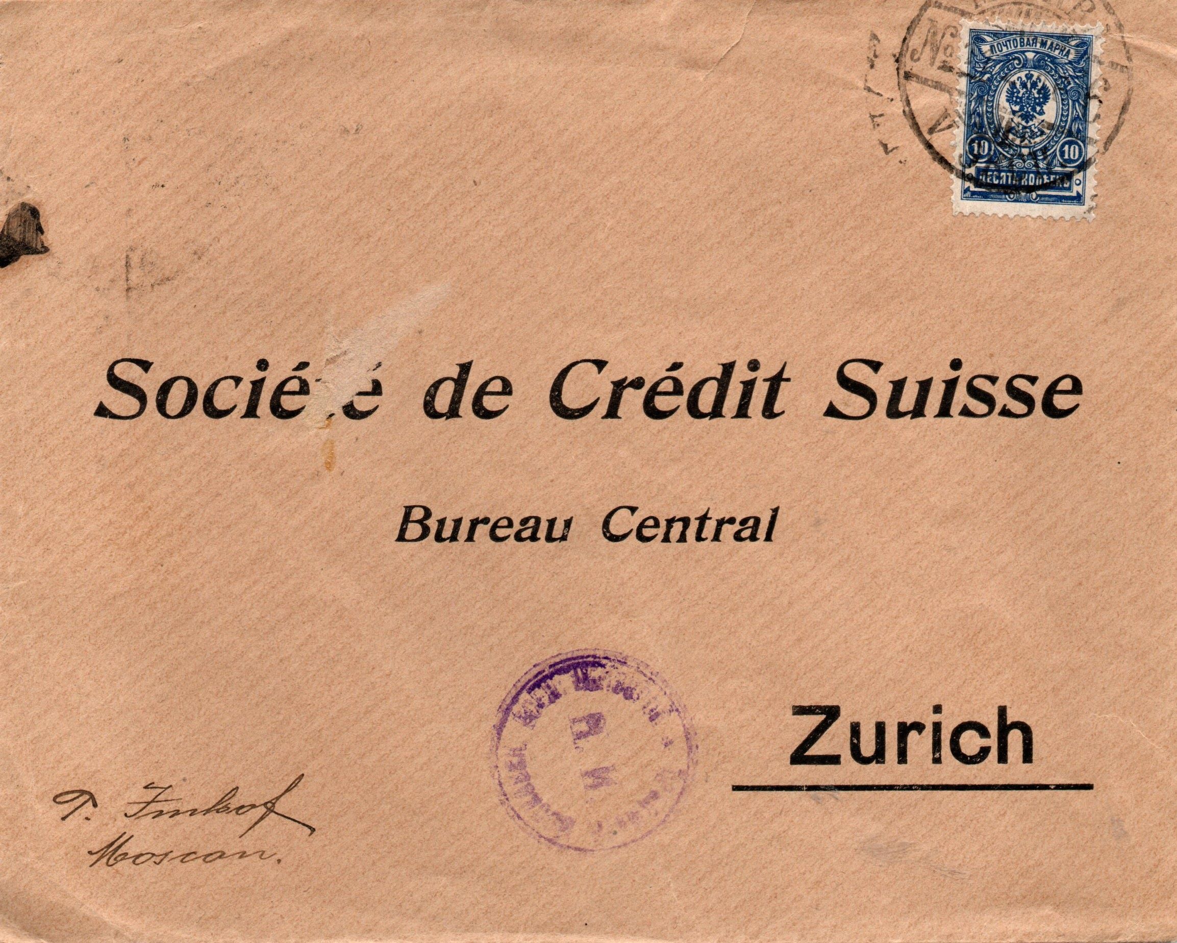 Doch dann fand ich diesen Brief bei einem ukrainischen Händler. Ein vorgedruckter Brief aus Moskau(?) nach Zürich an die Société Credit Suisse. Nun ist die Schweiz ja ein absolut gängiges Empfängerland russischer Zensurpost im 1. Weltkrieg aber einen Brief an eine Bank hatte ich bislang nicht in meiner Sammlung. Ich fand das zunächst ungewöhnlich aber man muss nur etwas nachdenken um auf die Lösung zu kommen.