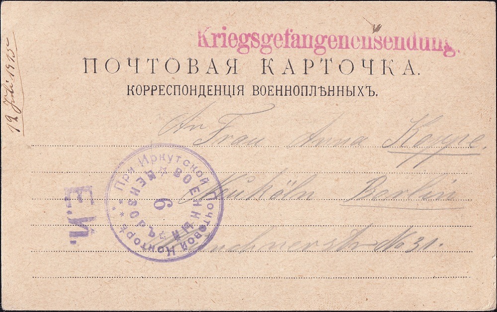 Der Typ 7 von Ufa fehlte mir bisher. Hier befindet er sich auf einer Kriegsgefangenenkarte aus Cheljazelinsk vom ?