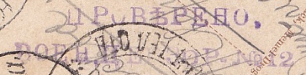 Postkarte vom 2.3.1915 aus Petrograd mit dortiger Zensur nach Frankreich. Der Zensurstempel ist der übliche Typ 3. Zudem ist eine Paraphe des Zensors zu sehen, welche keinem im Speeckaert stehenden Prüferstempel zugeordnet werden kann. Dieser Zensor ist hier möglicherweise erst nach Austeilung der Stempel tätig gewesen.
