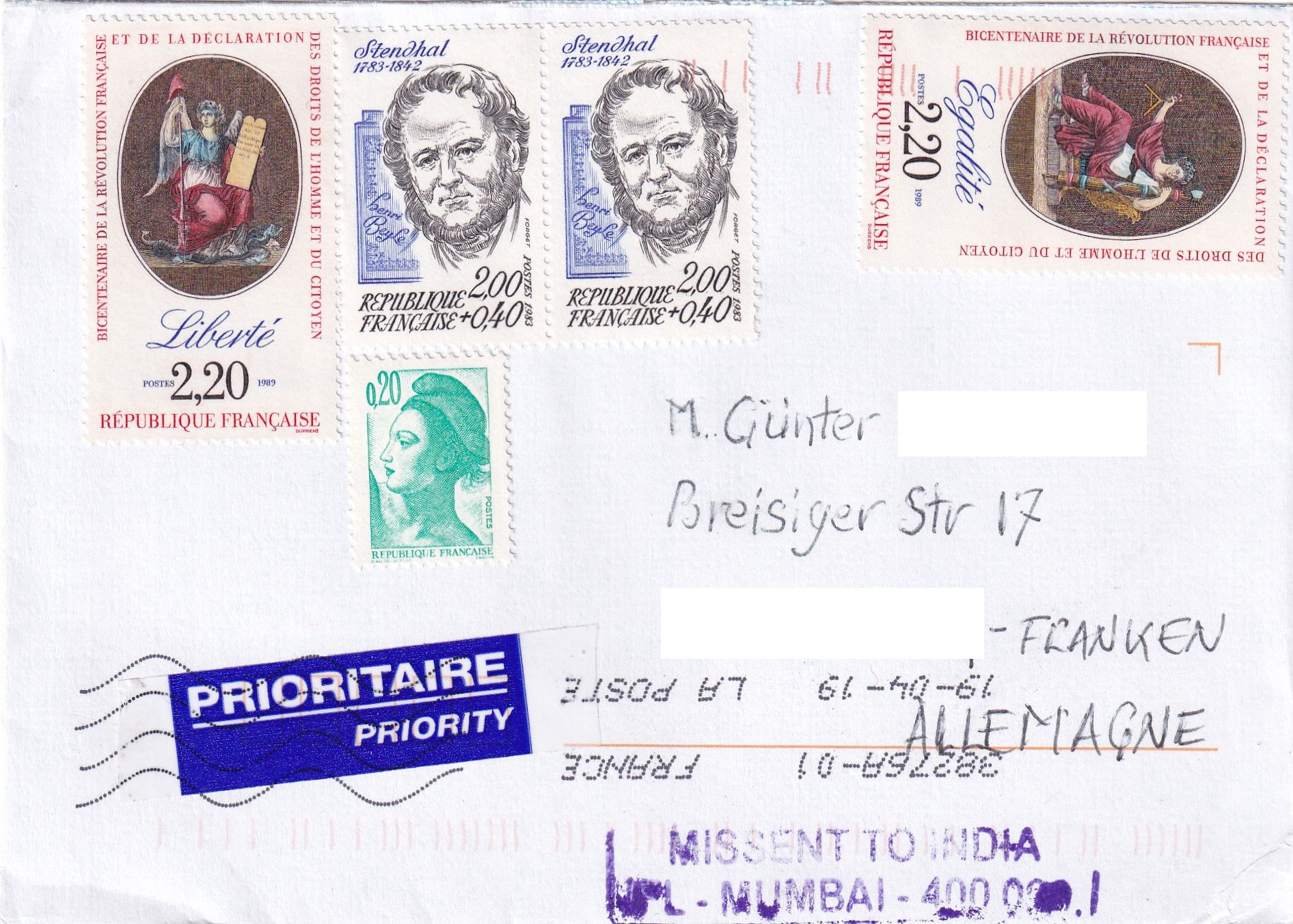 Kein Wunder, wenn man ewig auf seine Post warten muss. Von Frankreich über Indien nach Deutschland. Das ist nicht die ideale Verbindung?