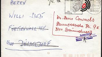In dem Briefekonvolut gibt es zahlreiche ähnliche Stücke mit handschriftlichen Vermerken und Postvermerken in Stempelform.