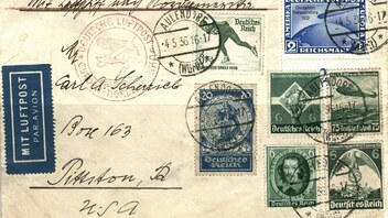 Aufstieg in Frankfurt am 6.5.1936 20:30 Uhr, Landung in Lakehurst, New Jersey am 9.5.1936 6:10 Uhr. Der New-Yorker Ankunftstempel um 9 Uhr vormittags „passt“. Auch ich habe keine Zweifel an der Authentizität des Briefs.