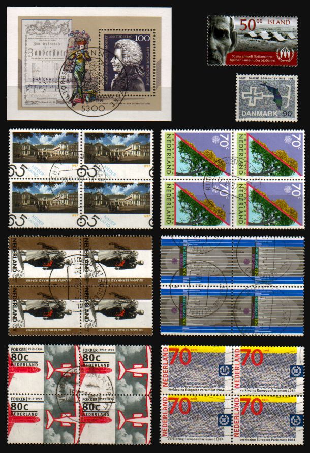 nachdem die Schweizer Briefe so schnell weg waren, schiebe ich nochmals einige Marken hinterher, die ich über eBay ebenfalls nicht verkaufen konnte: 1 Mozart-Block aus Deutschland, 1 Marke aus Island, 1 Marke aus Dänemark, 6 gestempelte Viererblocks aus den Niederlanden, 2 Marken aus Argentinien, 1 Marke aus St. Kitts, 1 mit Charlie Chaplin aus Indien, 6 aus Chile (siehe angehängte Bilder).