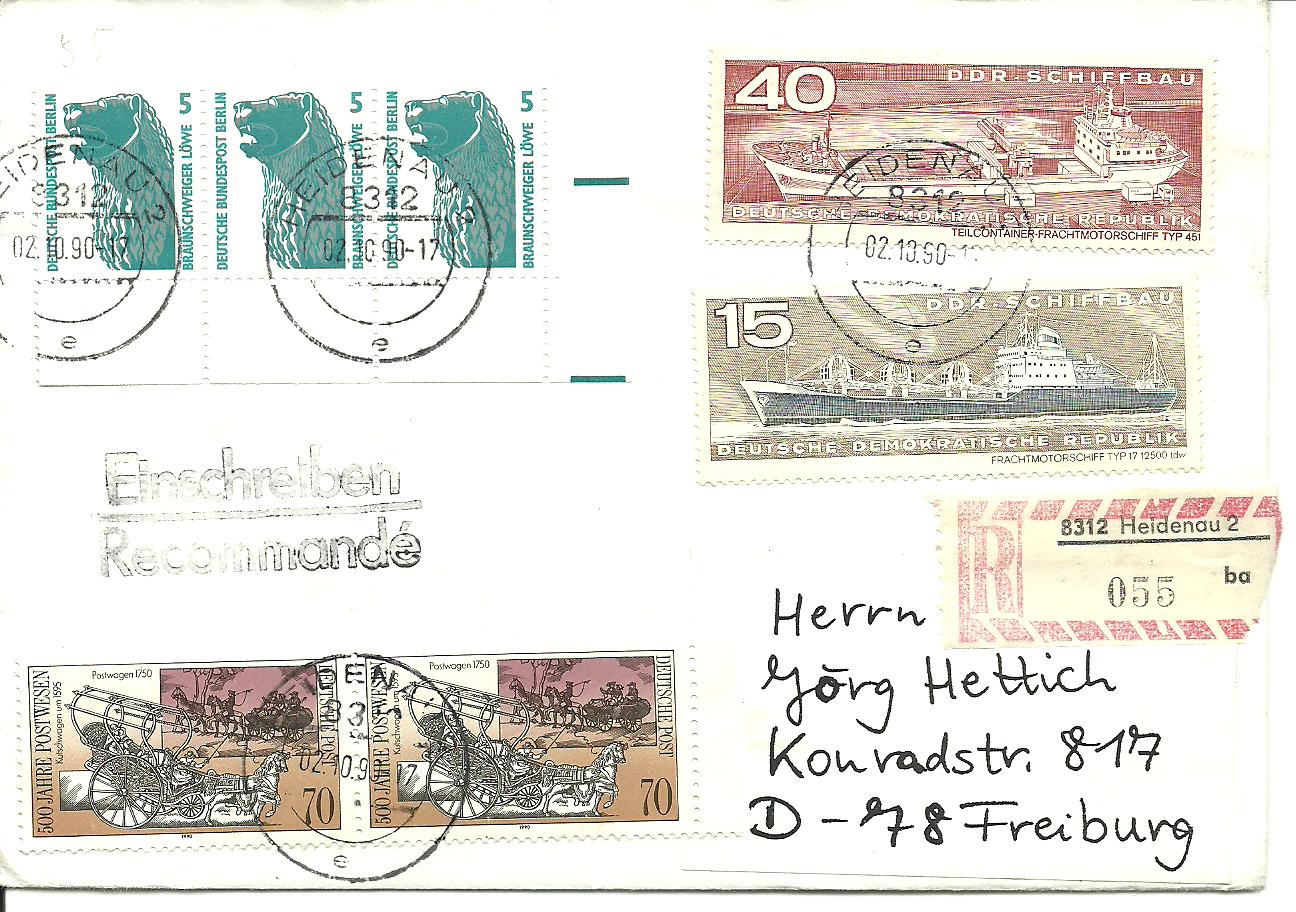 Es wurden Altbestände an DDR-Marken aufgebraucht, die bis zum 02.10.1990 gültig waren.