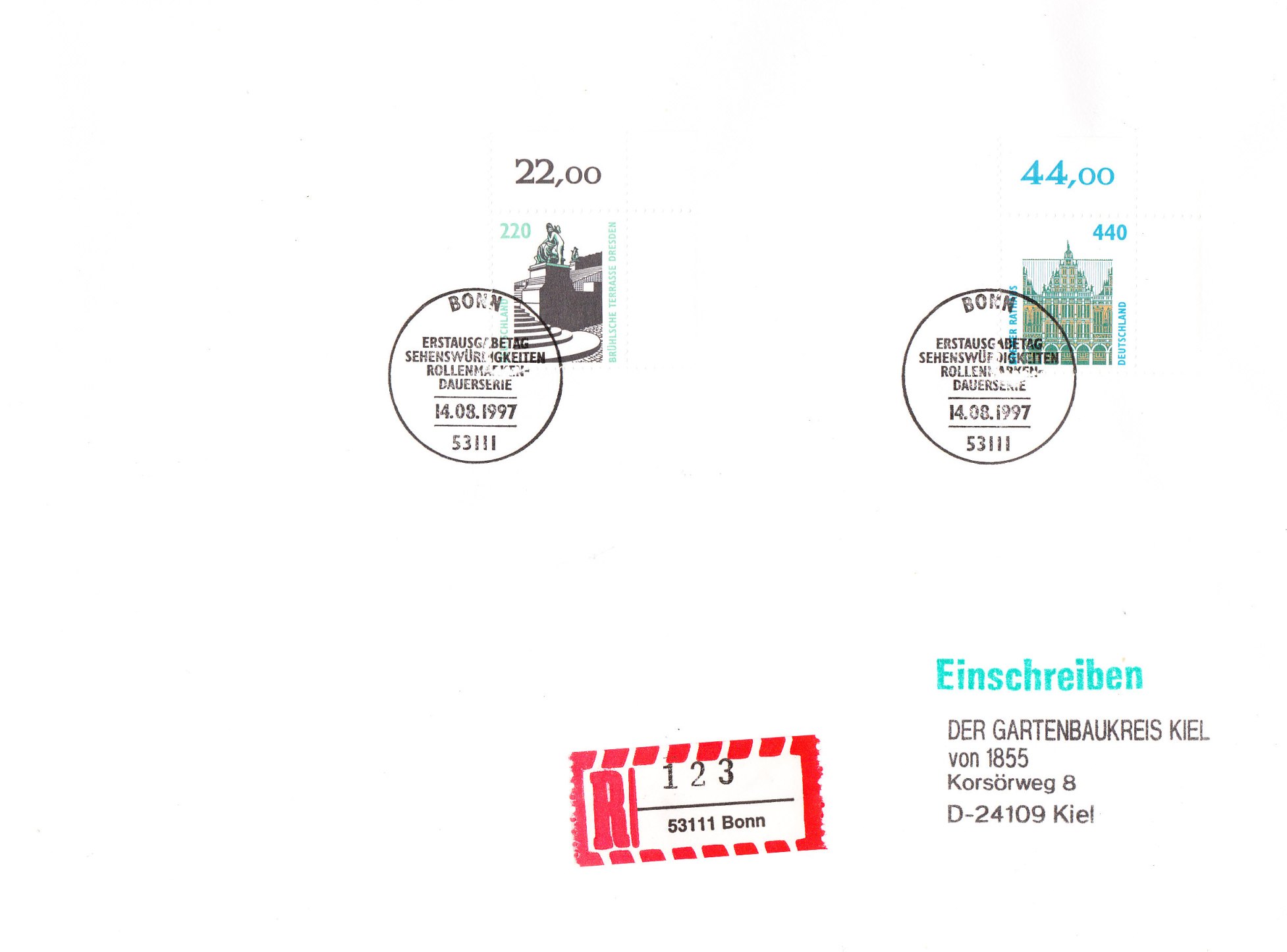 Standardbrief mit Zusatzleistung Einschreiben & Rückschein (1,00+3,50+3,50=8 DM).