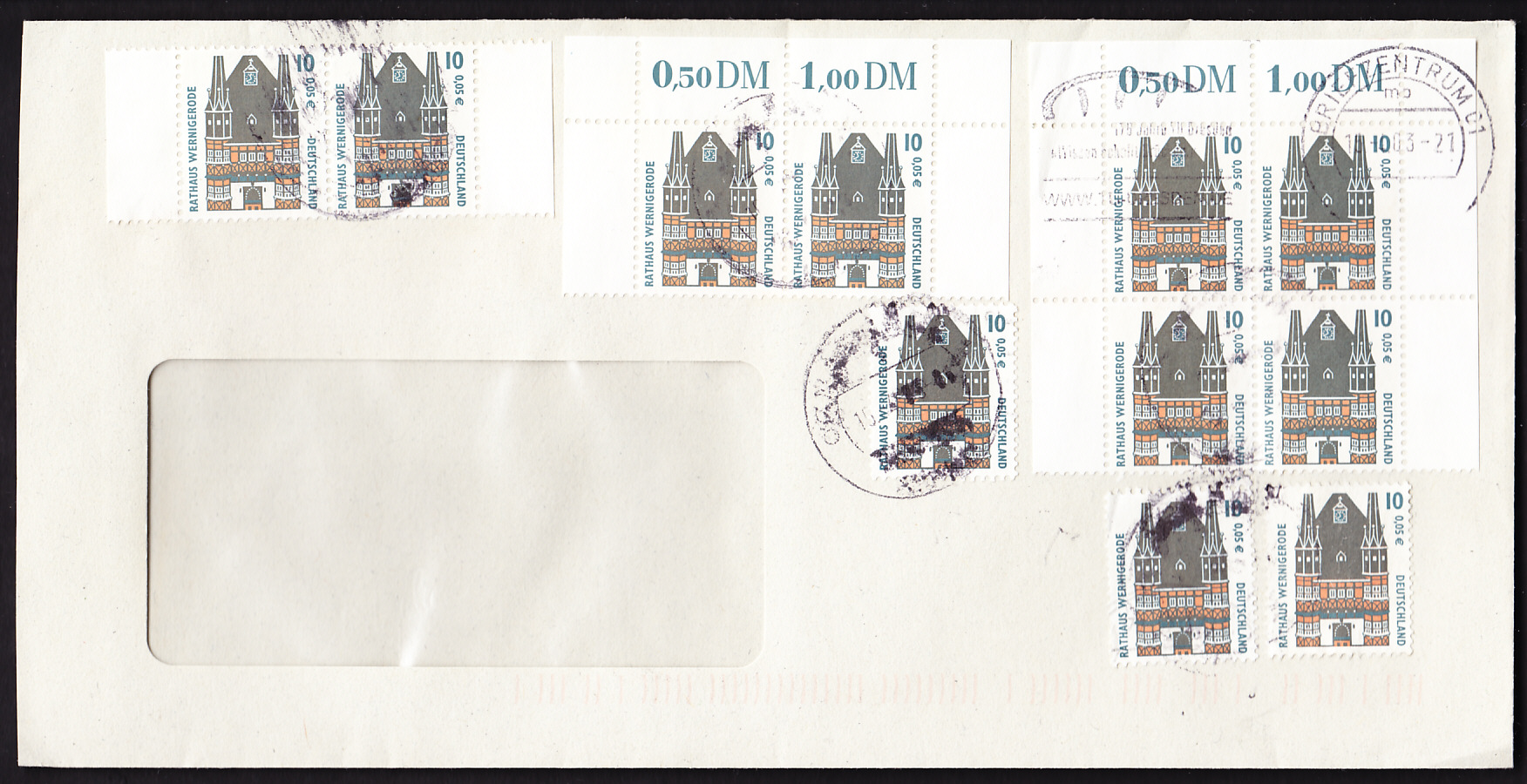 Es handelt sich dabei um einen Standartbrief zu 55 Cent, verklebt wurden 11 Marken zu 10 Pfg. bzw 0.05€. (Mi.Nr. 2139)