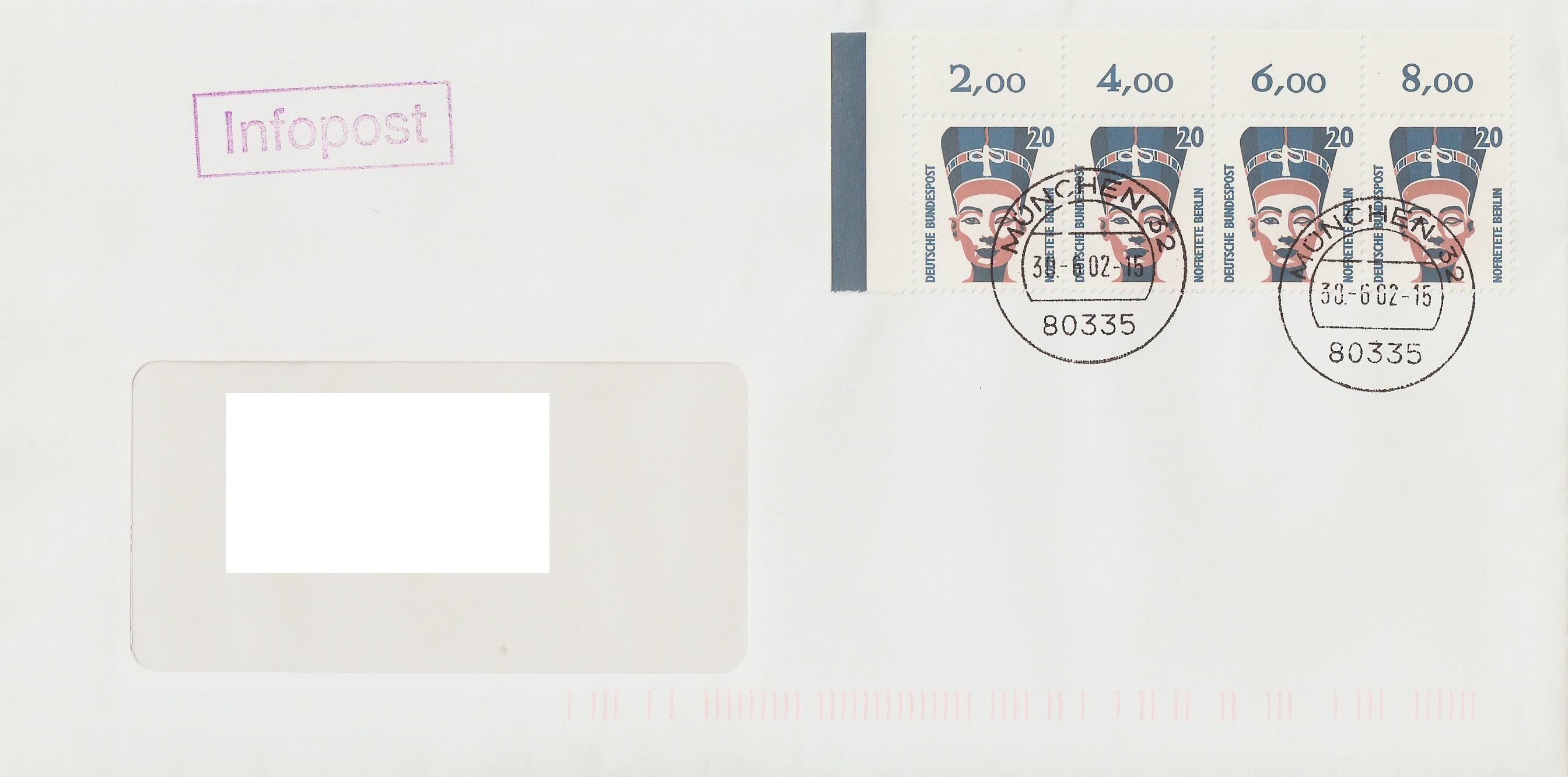 Infopost ab 01.01.2002 wird nicht frankiert, ausgenommen Standard bis 20 g mit 24 C