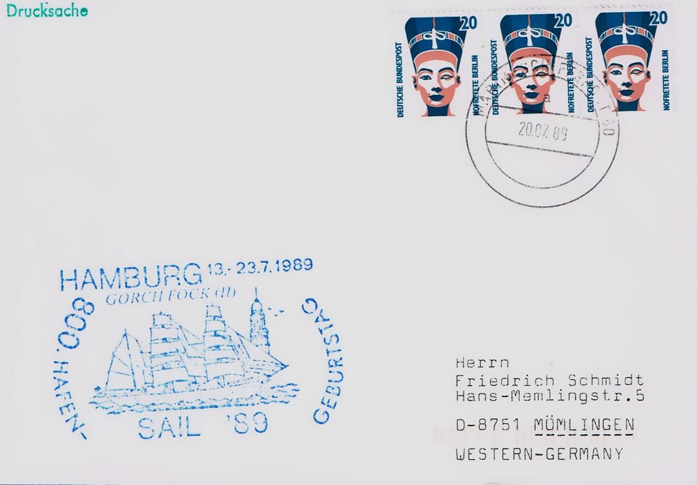 Die Sendungsart "Drucksache zu ermäßigter Gebühr" gab es nur im Auslandsverkehr, wobei eine solche Sendung von 51 bis 100 g 1991 80 Pf Porto kostete!