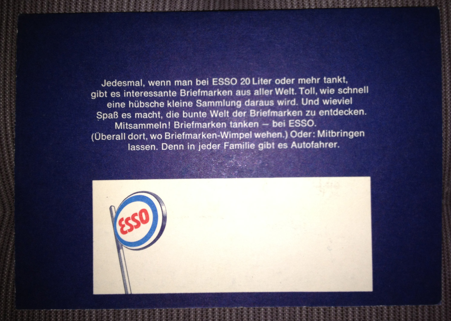 Gestern entdeckte ich bei meiner Oma eine Steckkarte mit älteren Marken, die es scheinbar in den 1970er Jahren bei Esso gab, wenn man 20 Liter tankte. Eine kleine Recherche ergab, daß es dazu passend auch ein Album zu bekommen war.