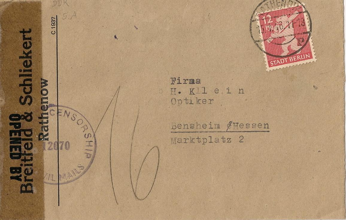 Dadurch auch ein sehr seltenes Porto - 75 Pfennig -(eine superseltene 15-fach-Verwendung) der 5 Pfennig Bären mit Aufdruck.