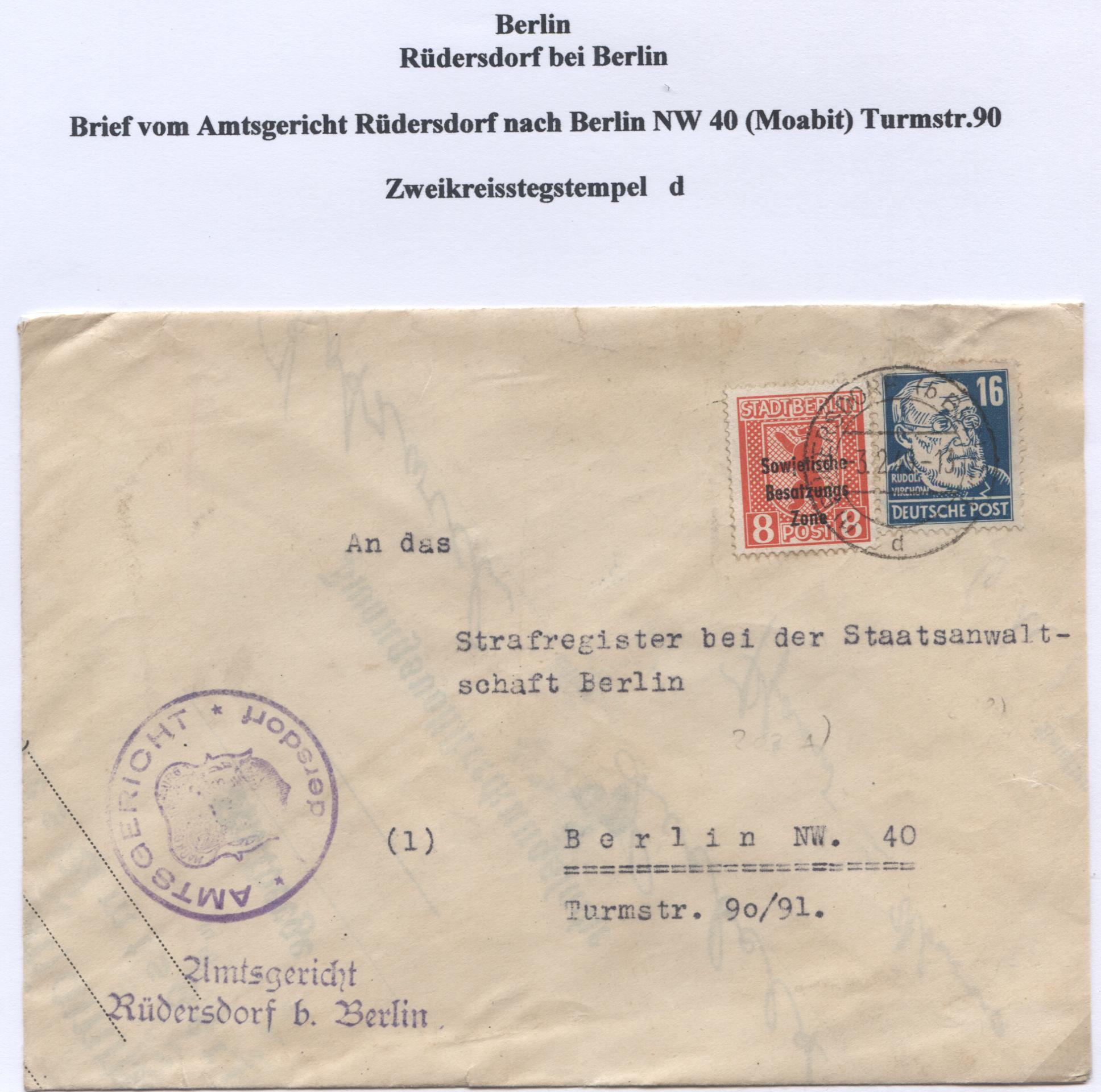 Der verwendete R-Zettel trägt bereits die PLZ ''1'', was im Jahre 1946 eher die Ausnahme darstellte!