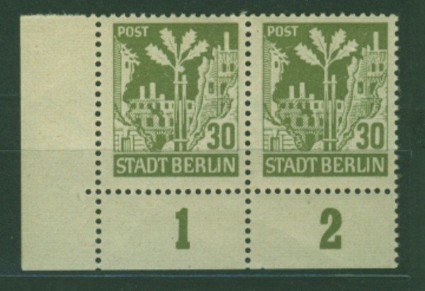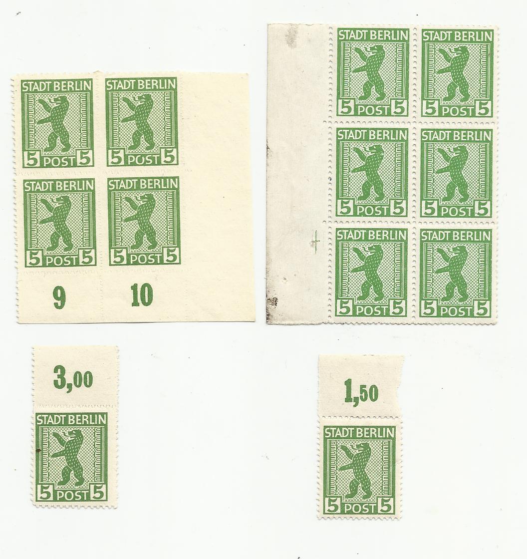 Einige Eckrandeinheiten und Randstücke der 1 A und 1 B mit unterschiedlichen Zähnungen, leider z.T. mit Gummierungsmängeln.