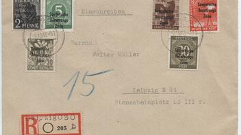 Portogerecht im Ortsverkehr mit 16 Pfennig der Überdruckmarken Mi.Nr.3 A SBZ Mi.Nr.202 A.
