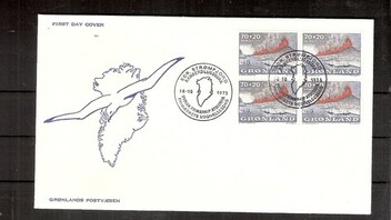 Der Helgafell-Vulkan bei Heimaey auf Island brach am 22./23.1.1973 aus. Diese Marke aus Grönland war eine Wohltätigkeitsausgabe zugunsten der Katastrophenopfer (Michel-Nr. 86)