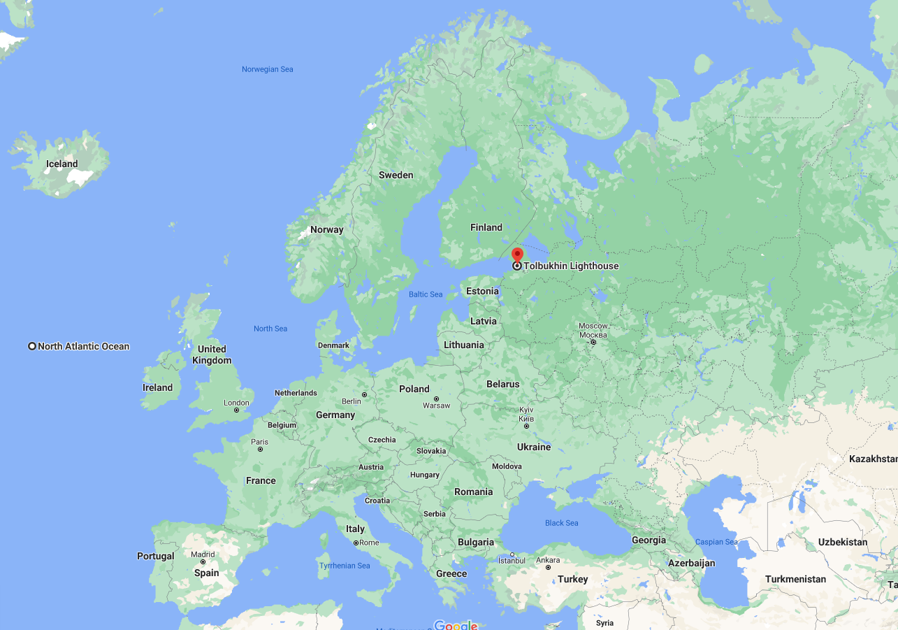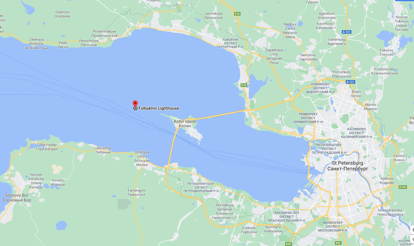 der Leuchtturm Tolbuhkin, der Großstadt St. Petersburg vorgelagert im Golf von Finnland