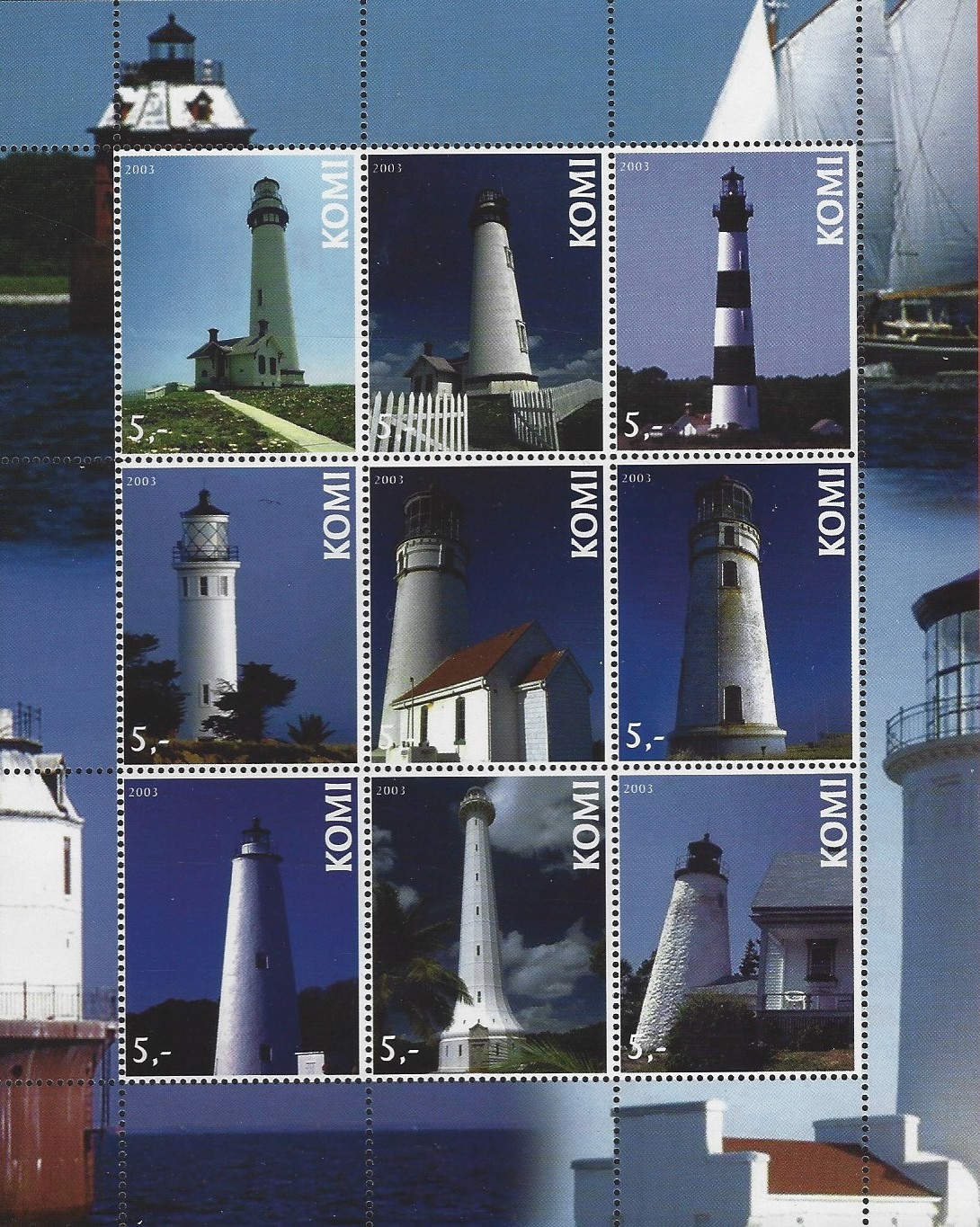 Im folgenden Link sind alle Schwindelausgaben (auch Bogus oder Cinderellas genannt) mit Leuchttürmen aufgeführt. Wenn man Komi anklickt, kommt leider keine Beschreibung mit dem Namen der Leuchttürme, sondern nur ein Bild.