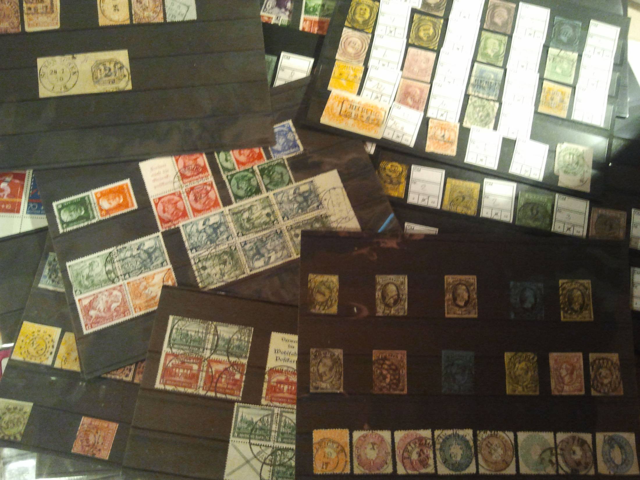 Das einzige was sauber geordnet ist sind die Vorphilabriefe, eine Raststatt Stempelsammlung, Deutsch Neuguinea und die kleinen Alben mit den europäischen Ländern von Anfang bis ca. 1920.
