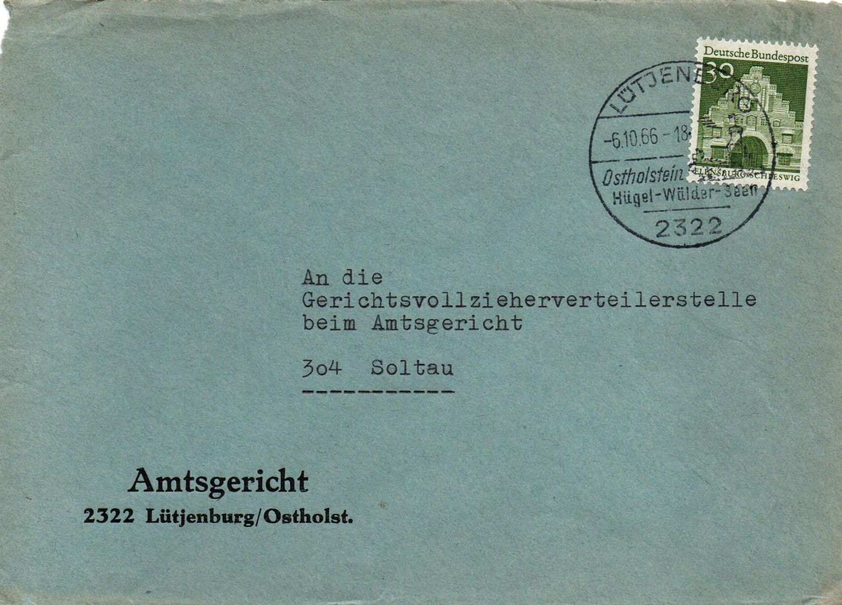 am 1. 4. 1966 wurde das Inlandsbriefporto von 20 Pfg. auf 30 Pfg. erhöht, für das neue Briefporto gab es eine 30 Pfg. Marke mit dem Nordertor in Flensburg zunächst in grün, später in rot (30 Pfg. = Auslandspostkartenporto, rot die entsprechende Weltpostvereinsfarbe)