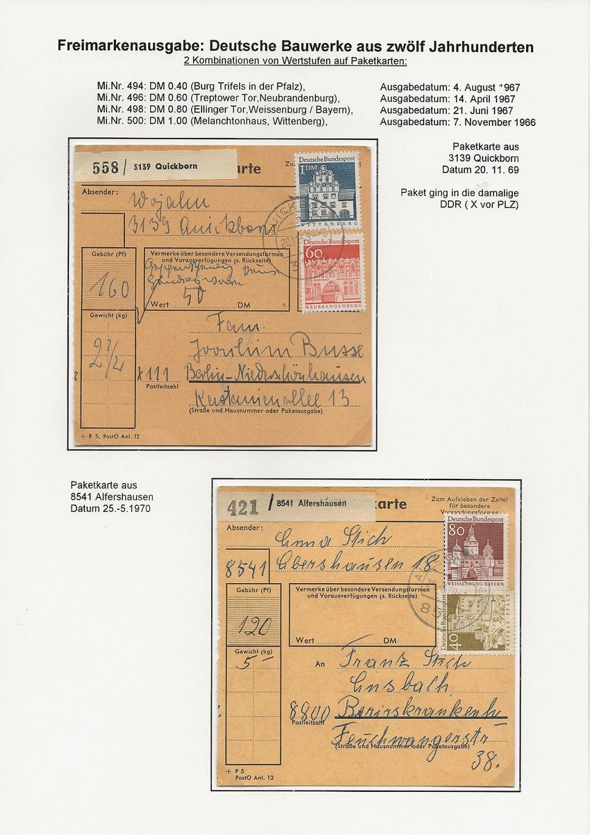 am 1. 4. 1966 wurde das Inlandsbriefporto von 20 Pfg. auf 30 Pfg. erhöht, für das neue Briefporto gab es eine 30 Pfg. Marke mit dem Nordertor in Flensburg zunächst in grün, später in rot (30 Pfg. = Auslandspostkartenporto, rot die entsprechende Weltpostvereinsfarbe)