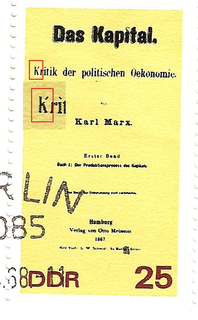 Hallo, ich fange mal mit einer 1367B an. Das 1. K von Kritik ist oben gebrochen.