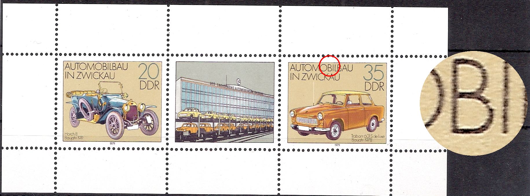 beim KLB 1977 2281-2286 Zähnungstyp C mit Plattenfehler