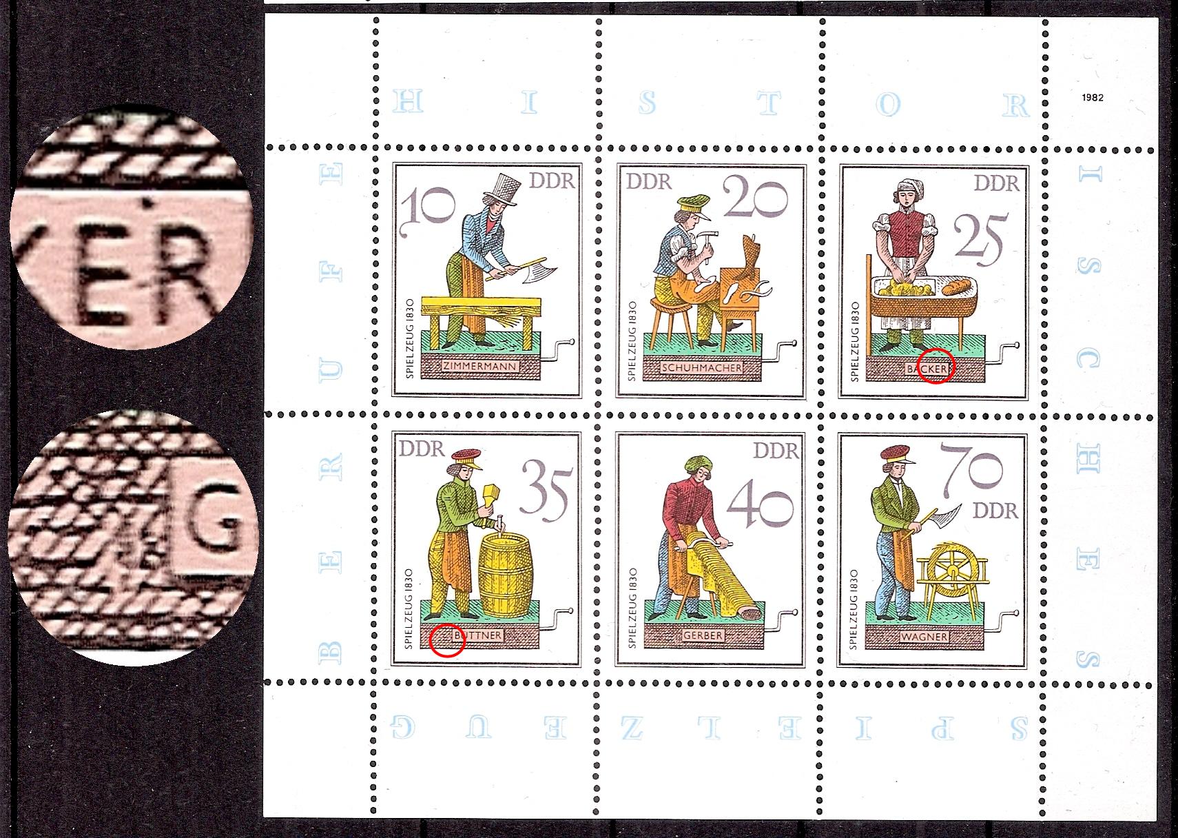 Richter 2283 I bzw. Plattenfehlerkatalog DDR 1970-1990 2283 Feld 3Bei meinen KLB ist im Feld 2 im vorderen Knie des hockenden Mannes immer