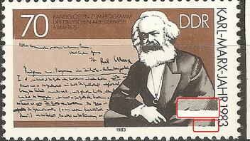 Hier die 1712 - Anstrich, Fuß des M in DEMOKRATISCHE fehlerhaft, nicht vorhanden -