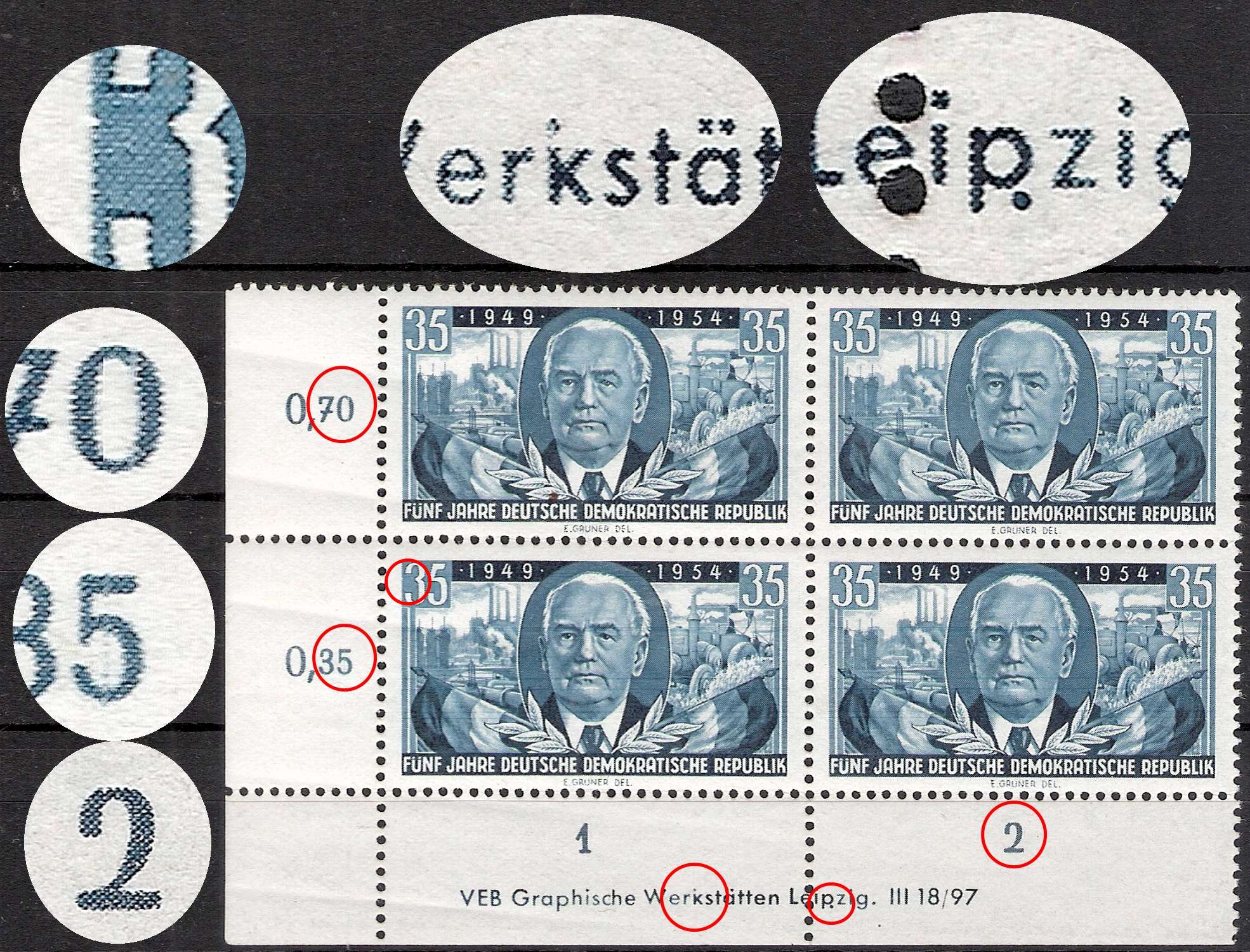 - Kerbchen neben Wertziffer 35 links linke untere Marke