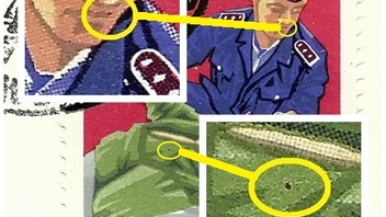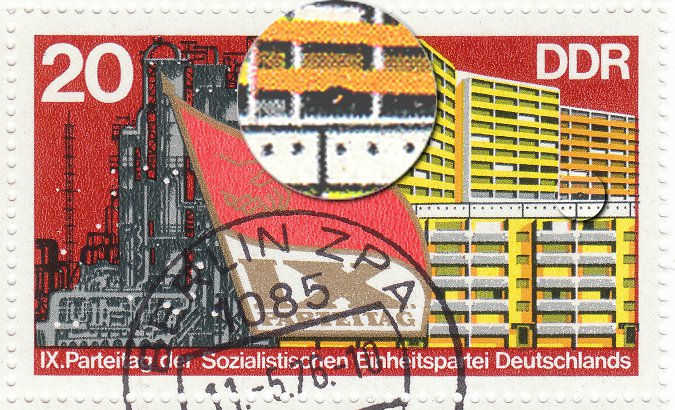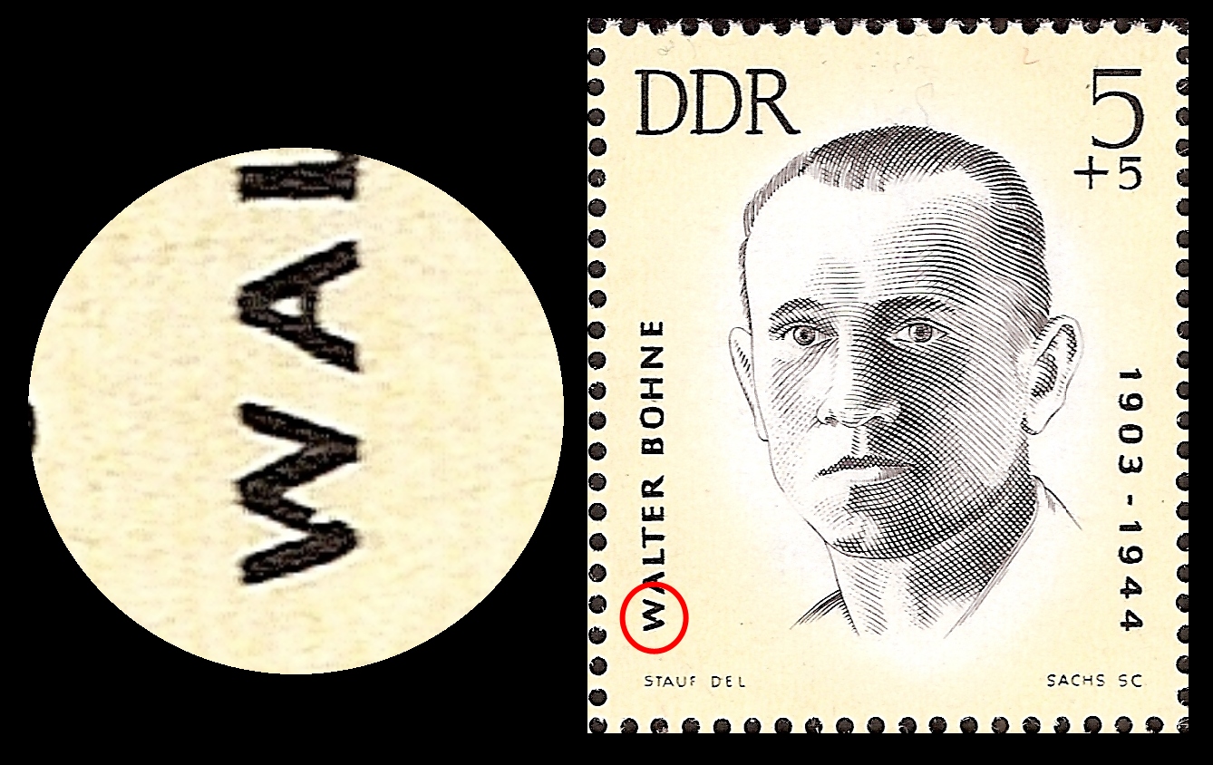1977 mit dkl. Schattenfleck am linken Bein / Marke vom linken Rand f16?