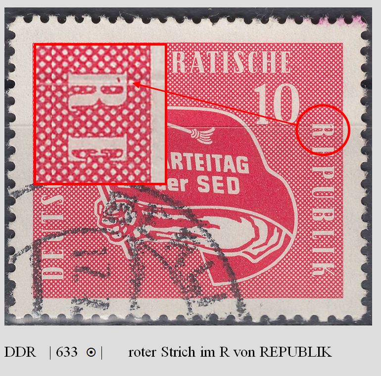 DDR 633 | gest | roter Strich im R von REPUBLIK