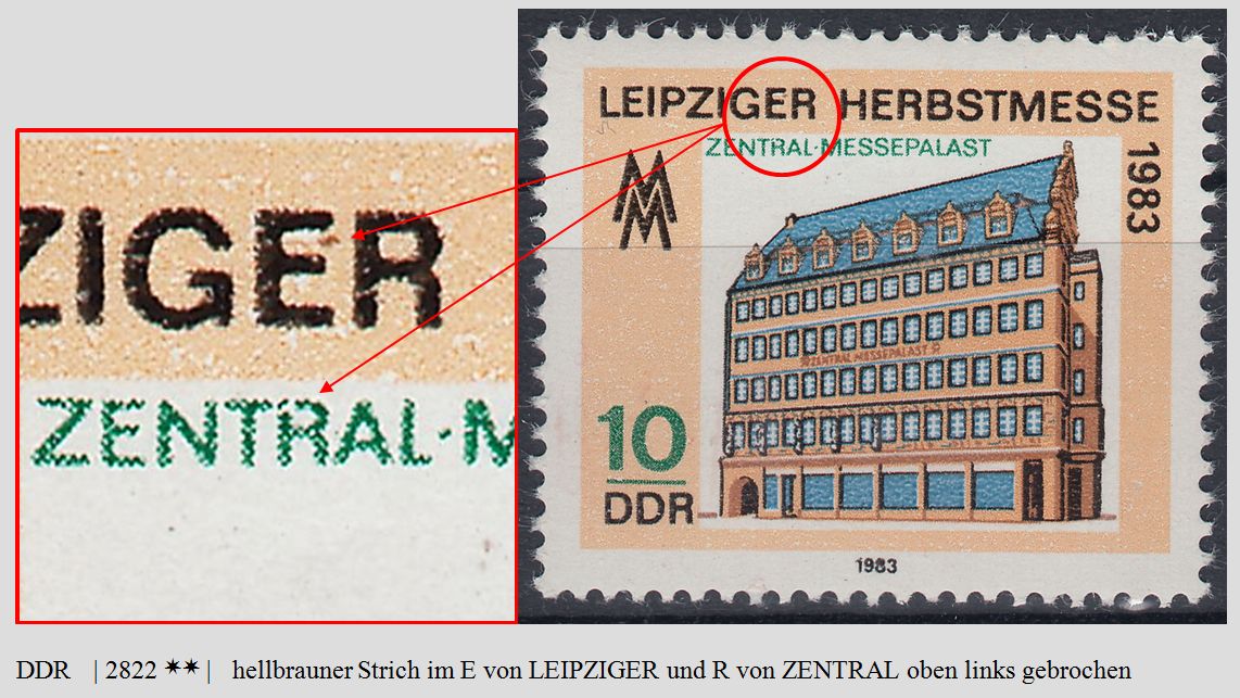 DDR 2822 | ** | hellbrauner Strich im E von LEIPZIGER und R von ZENTRAL oben links gebrochen