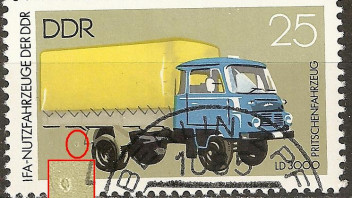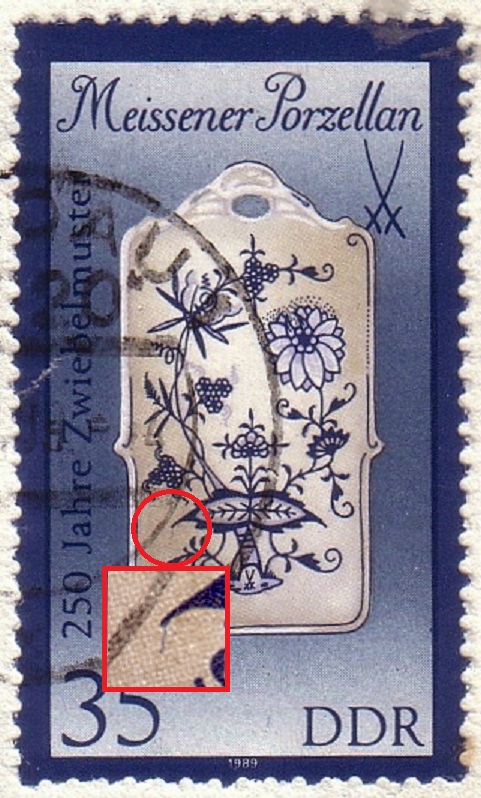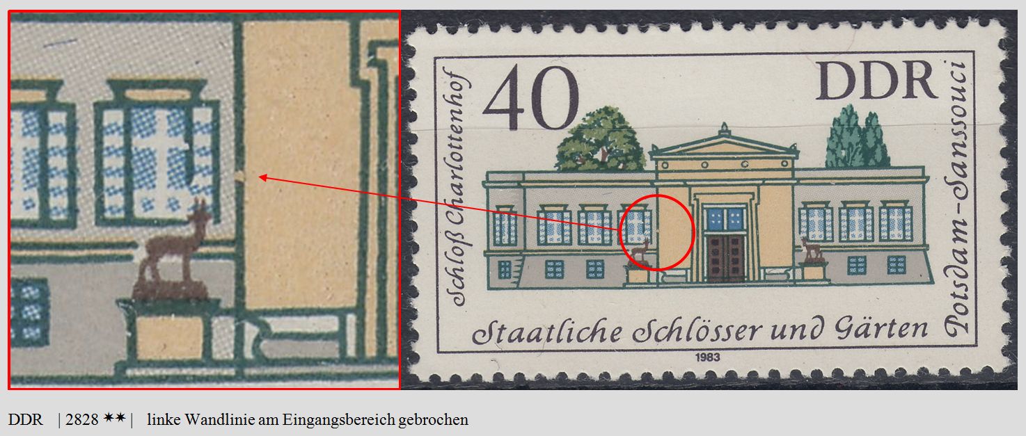 DDR 2828 | gest. | grüner Fleck (Baumfarbe) links vom ersten D von DDR