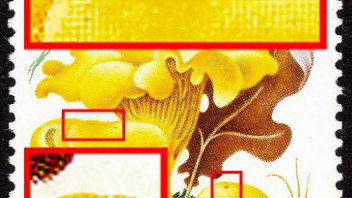 - brauner Fleck im kleinen Pilz und braune Strich-Punkt-Linie im li. Pilzhut