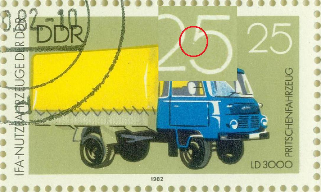 DDR 2802 | ** | Bruch der unteren Bildrandlinie unter der Wertziffer 5