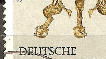 - Oberrandfehler auf nur einer Bogennummer vorkommend, zweimal vorhanden auf bogengestempelter 10er Einheit.