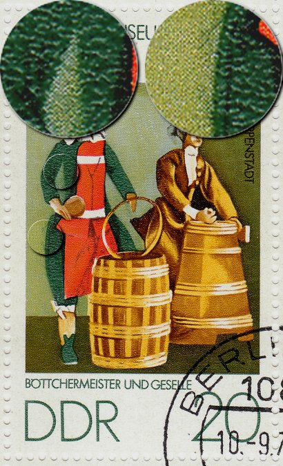 1977 mit dkl. Schattenfleck am linken Bein / Marke vom linken Rand f16?
