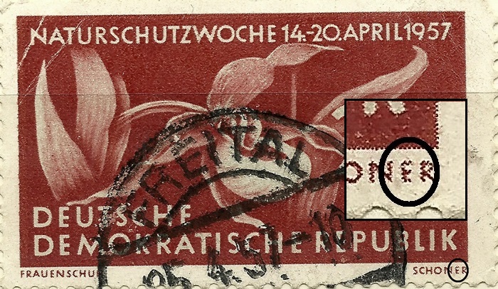 DDR 2763 | gest. | aus meiner Sicht Bestätigung dieser 2011 von kalle01 vorgestellten Marke. Es stimmen auch, soweit in dem Scann von damals noch erkennbar die Brüche im rechten und linken Rahmen.