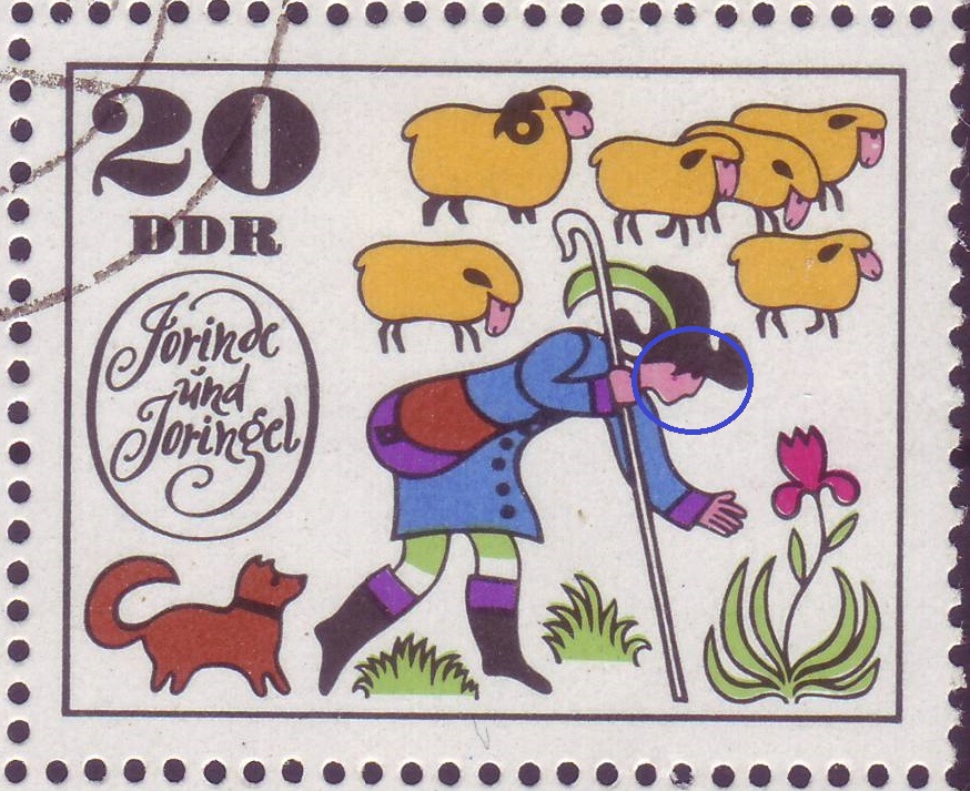 - retuschierter Rasterfehler wahrscheinlich 1. Bogenreihe