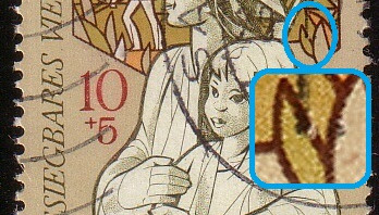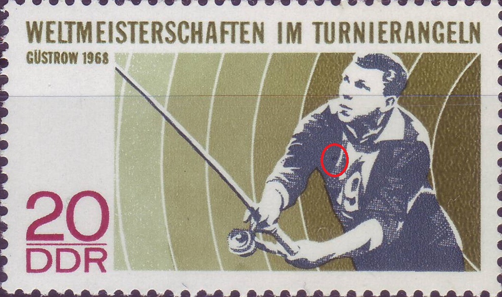 2) Kerbe im Blatt unter R von DDR