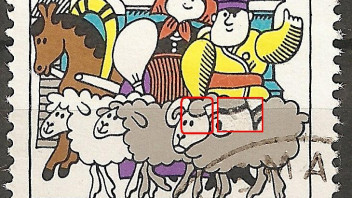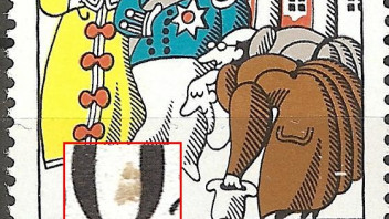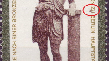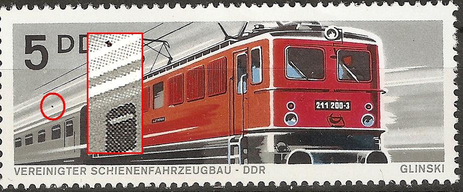 589 mit zwei sehr schön auffälligen Abweichungen: 1x Fleck im Markenbild , 1 x Rahmenbruch rechts unten
