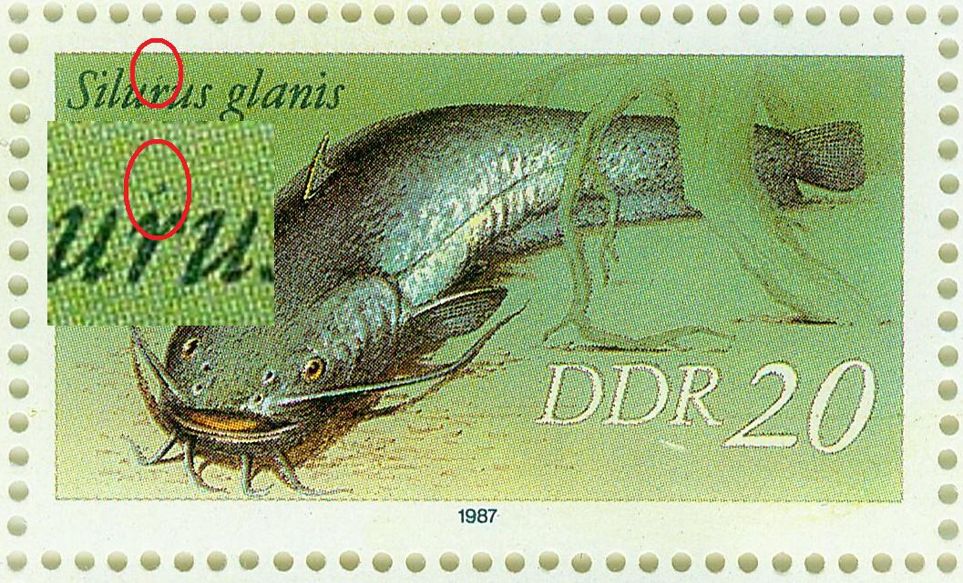 eine 3097 aus Klb , dunkelgrüner Strich / Punkt über r von Silurus