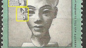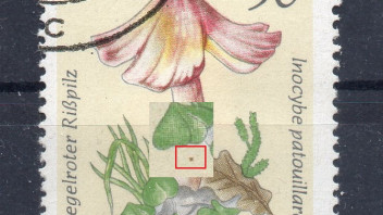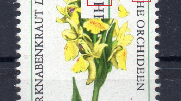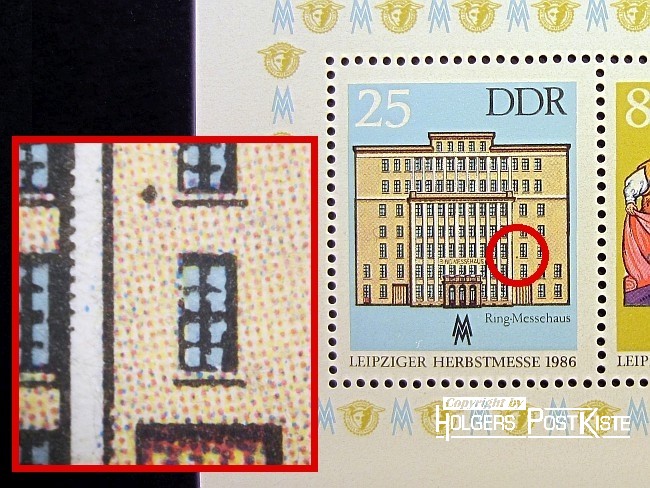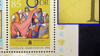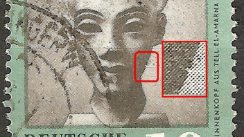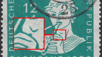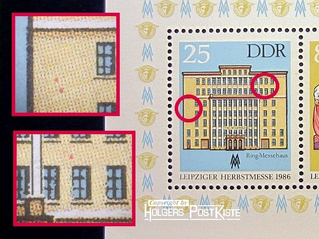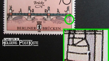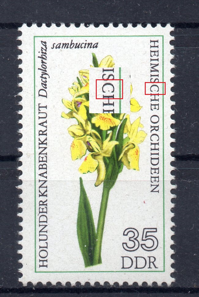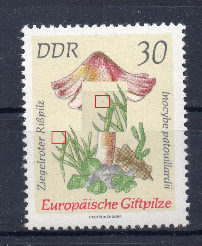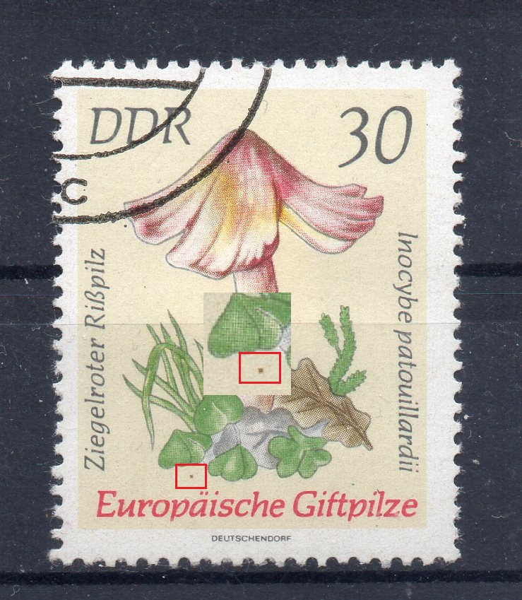 3098_a = brauner Punkt am Bildrand neben "5" der Wertziffer sowie gelblicher Rasterfleck am linken "ä"-Punkt