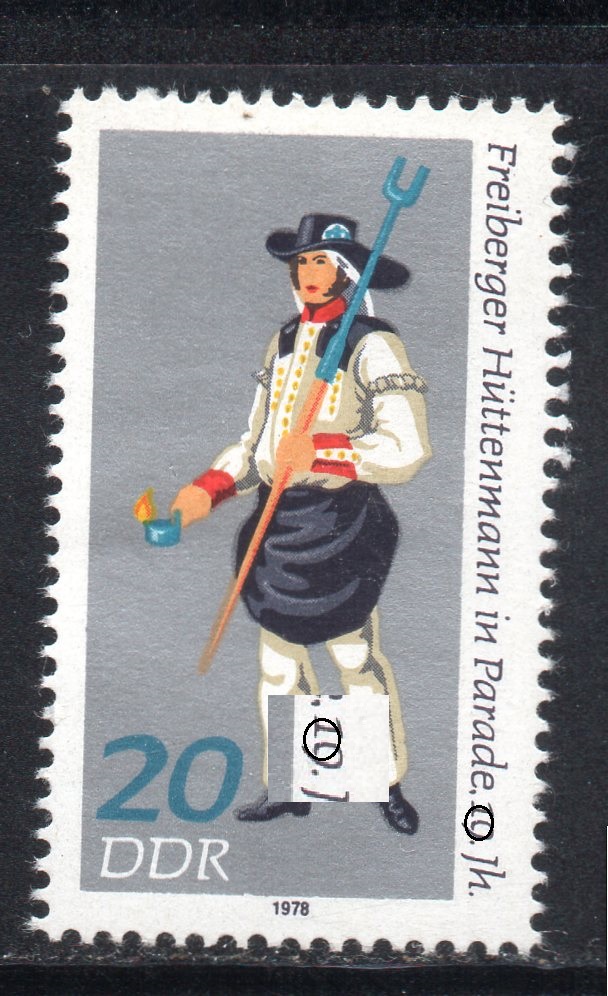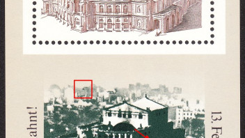 - erstes D von DDR unten dunkel, zusammen mit zwei roten Punkten bei DDR, brauner Pkt. re. von ...OPER und unter re. Gebäudetor