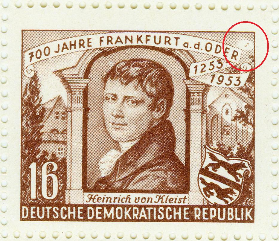 3323 b = weißer Punkt im Nelkenblatt unter R von DDR